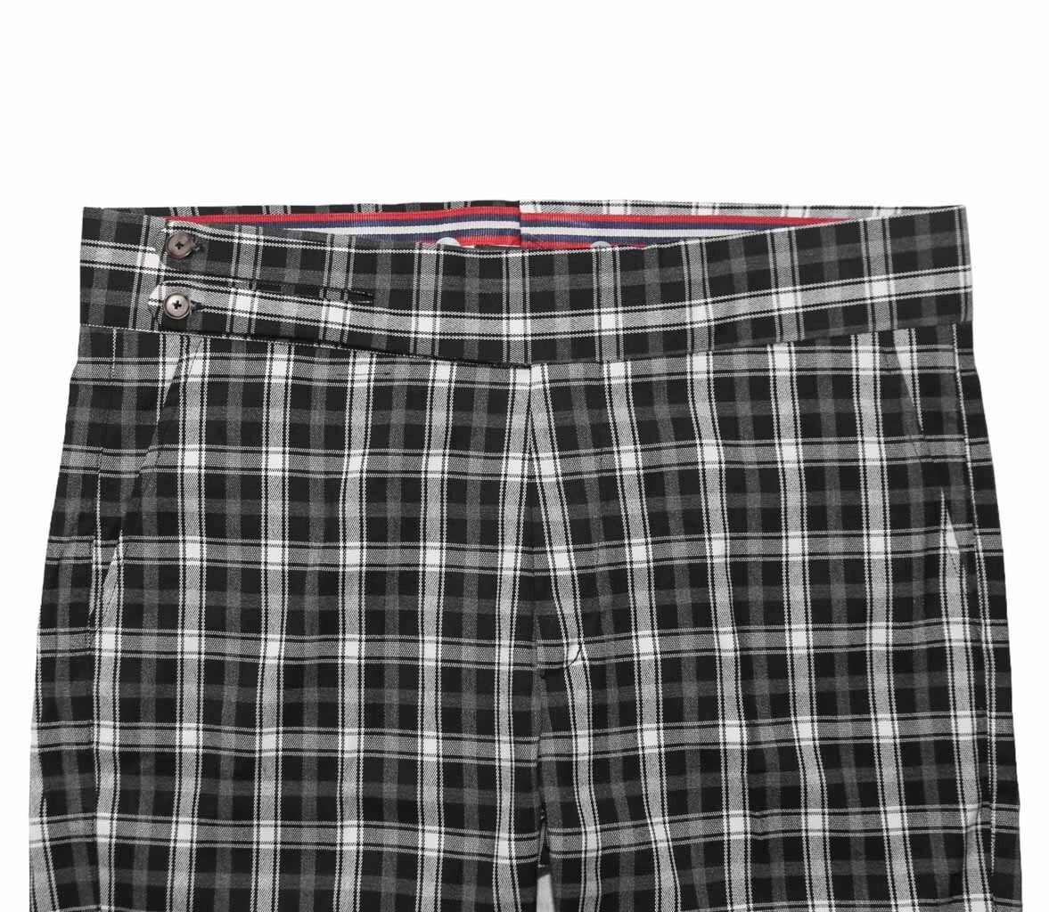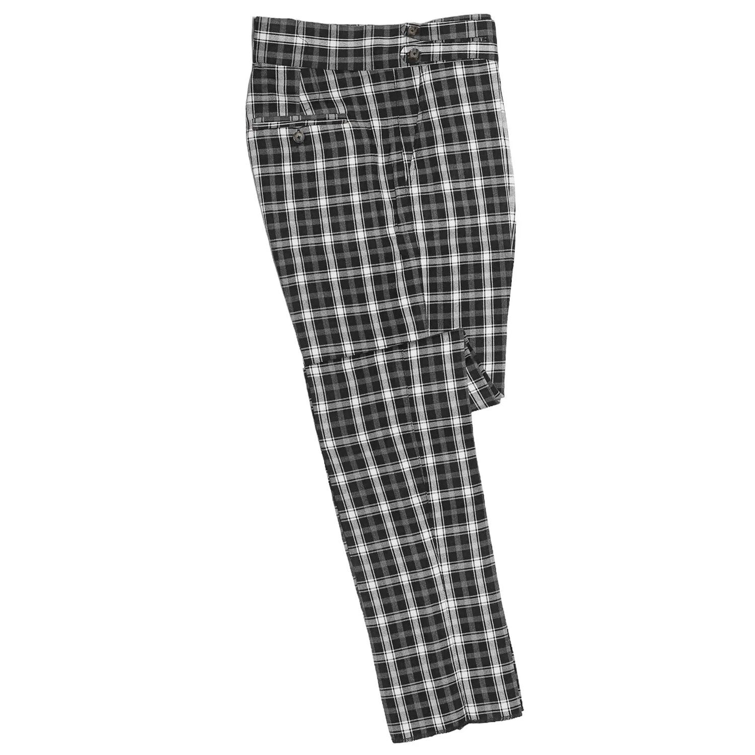 Mens Gurkha Trousers 34 Black Gray White Plaid Slim Fit Flat Front Dress Pants
