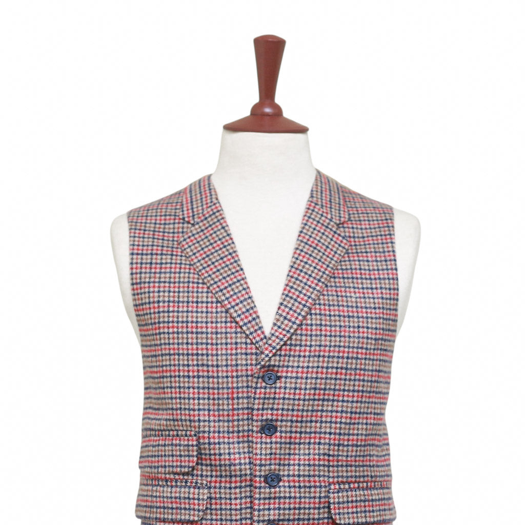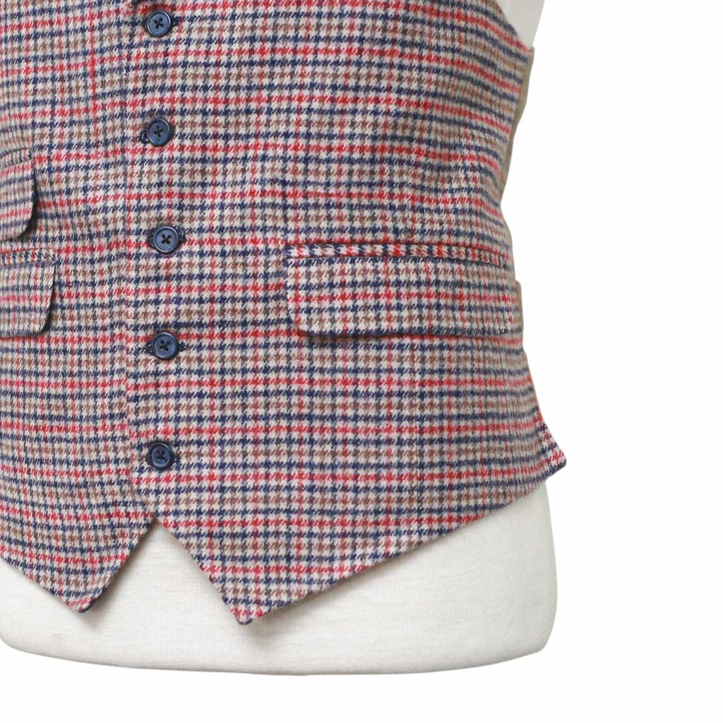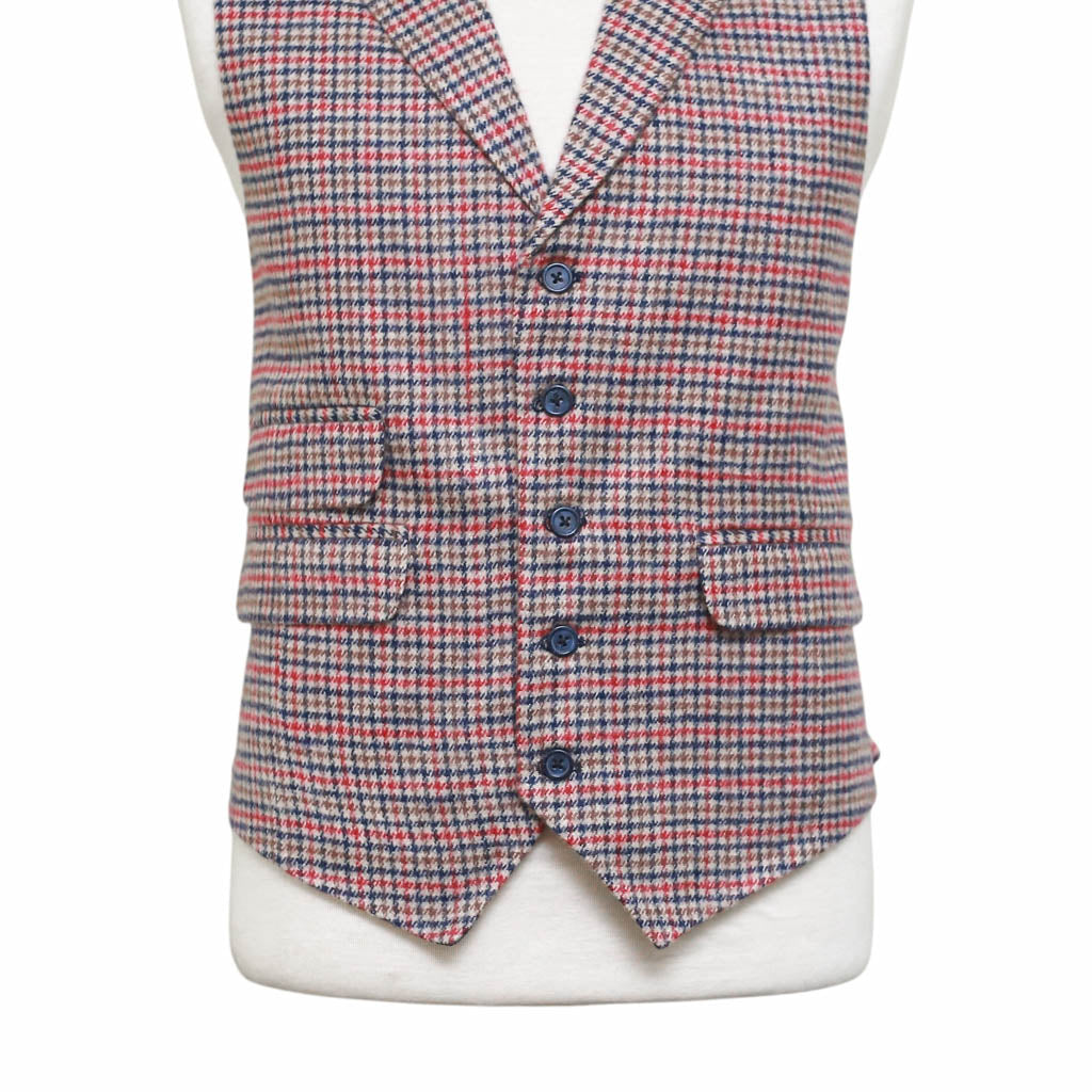 Make a Bold Statement with Our Red, Blue, & Beige Plaid Check Waistcoat – A Handmade Masterpiece of Vintage Style and Modern Elegance
