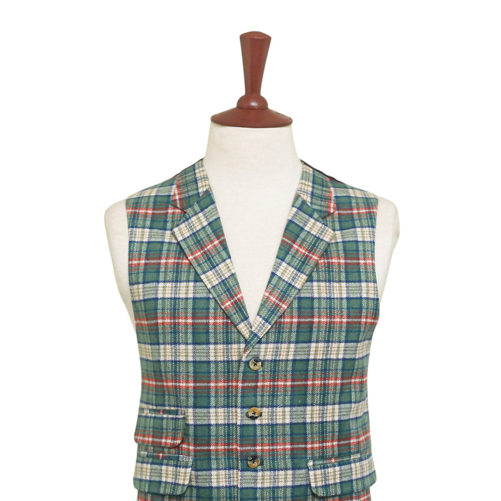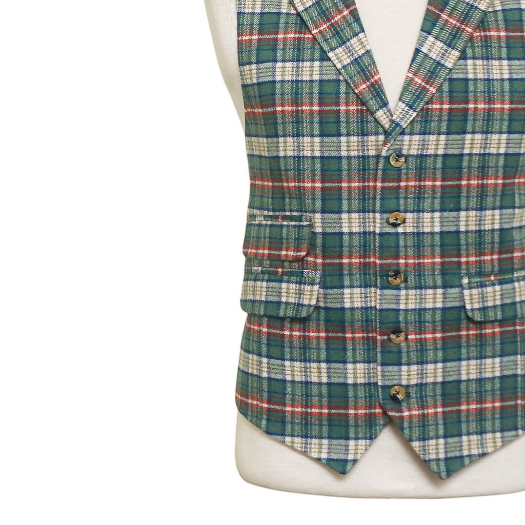 Make a Bold Statement with Our Green, Beige, & Orange Plaid Check Waistcoat – A Handmade Masterpiece of Vintage Style and Modern Elegance