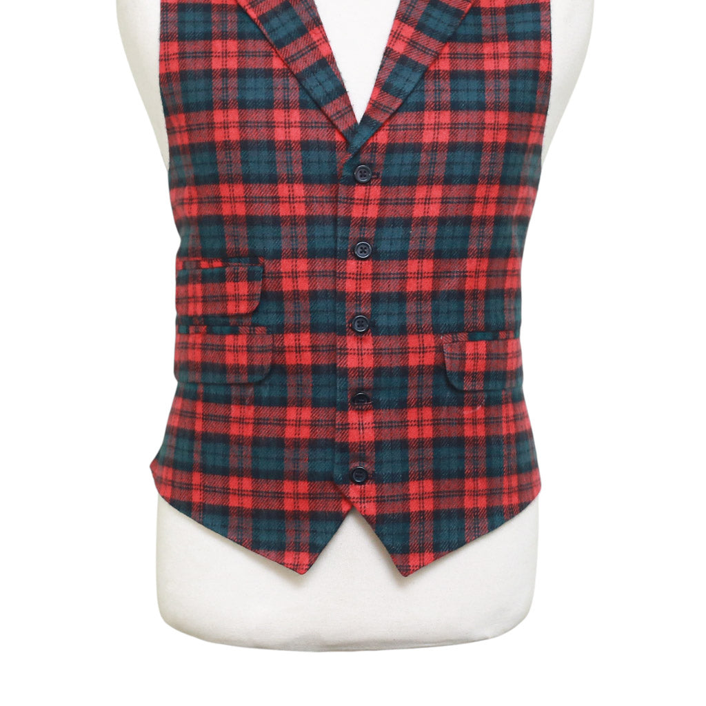 Make a Bold Statement with Our Red & Green Tartan Plaid Waistcoat – A Handmade Masterpiece of Vintage Style and Modern Elegance