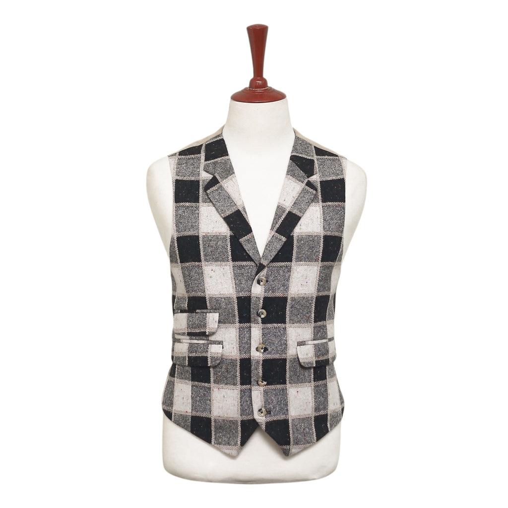 Make a Bold Statement with Our Black & Beige Plaid Check Waistcoat – A Handmade Masterpiece of Vintage Style and Modern Elegance