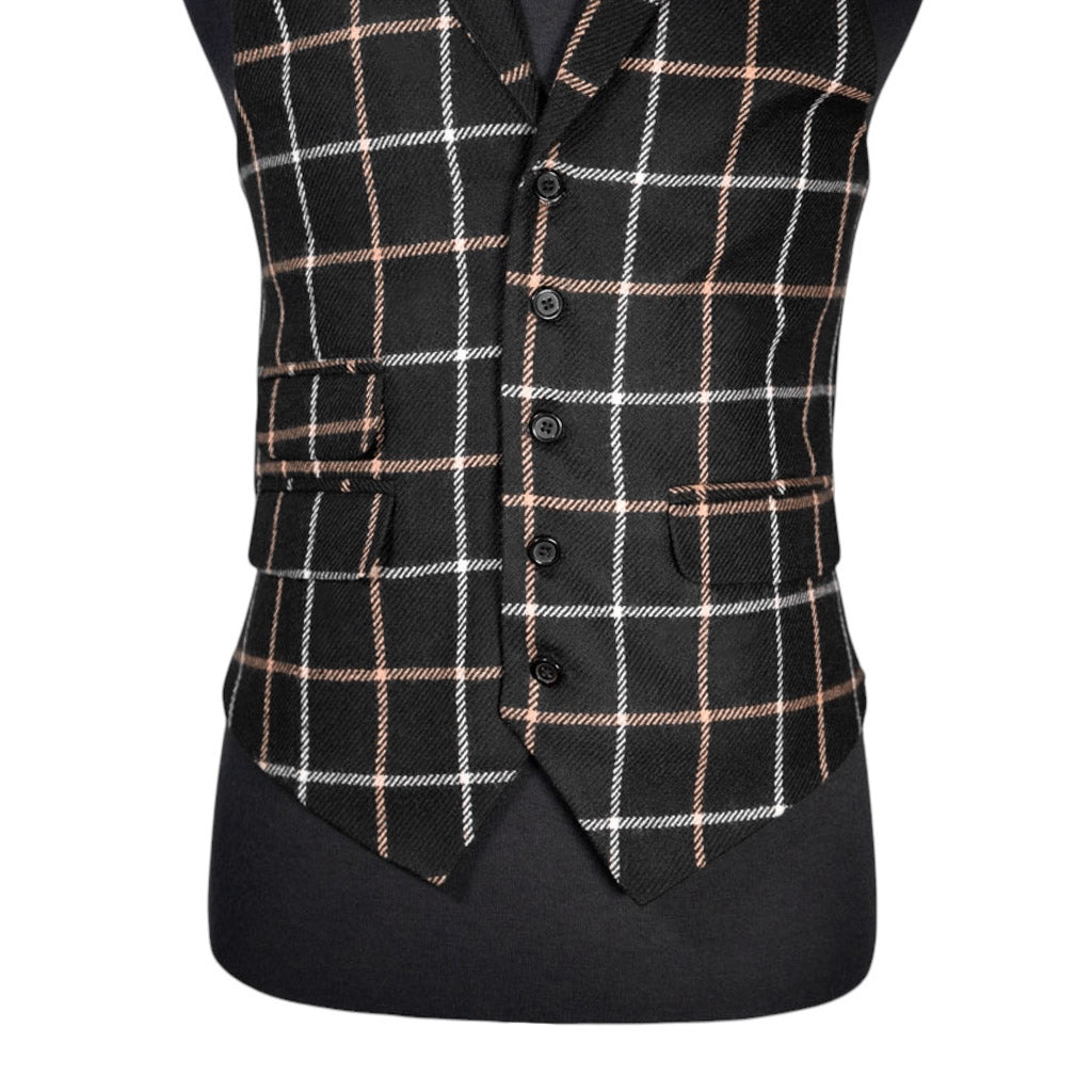 Elevate your style with our luxurious black, beige, and white plaid check waistcoat, a perfect blend of vintage sophistication and modern elegance. Crafted from premium wool, this single-breasted vest is designed for those who appreciate timeless fashion and impeccable tailoring.
