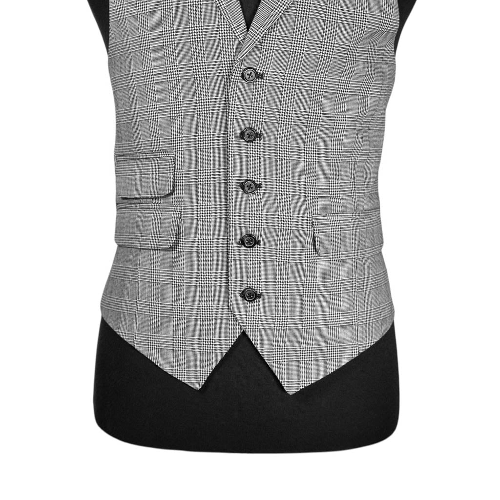 Mens Waistcoat Suit Lapel Vest 40R Gray Plaid Wool Formal Wedding Prom Party