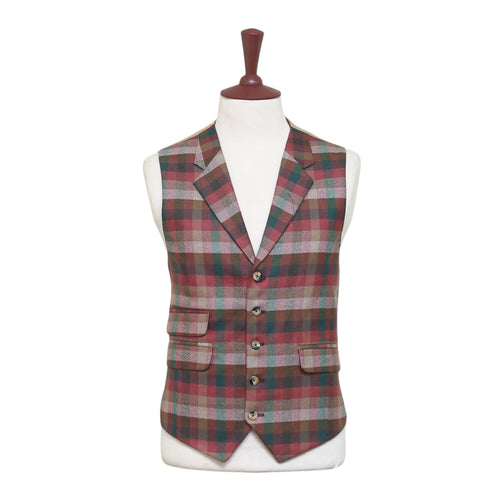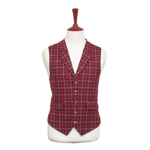 Mens Vest 44R Burgundy Green Check Wool Waistcoat XL Western Casual Wedding