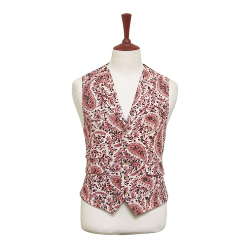 Mens Paisley Vest 44R Red Beige Waistcoat Formal Wedding Prom Party Groom