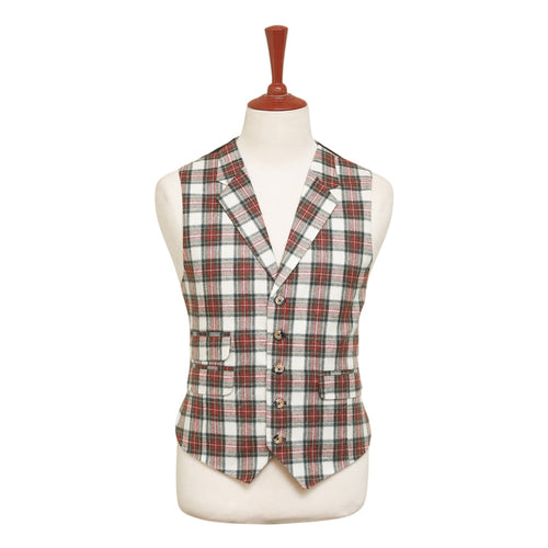 Mens Tartan Plaid Vest 44R White Red Green Lambswool Waistcoat XL Formal Wedding