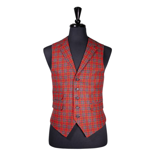 Mens Waistcoat Suit Lapel Vest 40R Gray Red Tartan Plaid Wool Formal Wedding