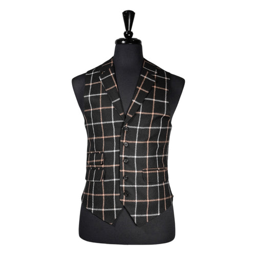 Mens Waistcoat Suit Lapel Vest 40R Black Beige Plaid Check Wool Formal Wedding