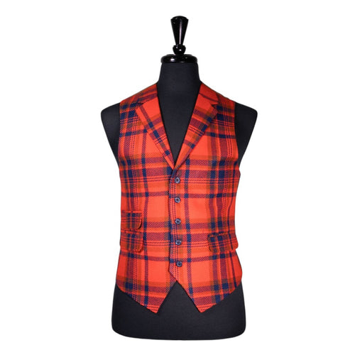 Mens Waistcoat Suit Lapel Vest 40R Orange Blue Plaid Wool Formal Wedding Party