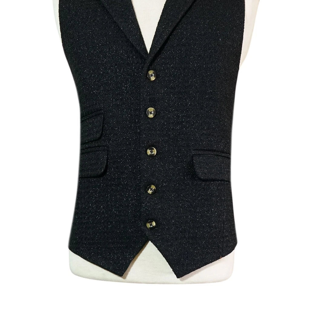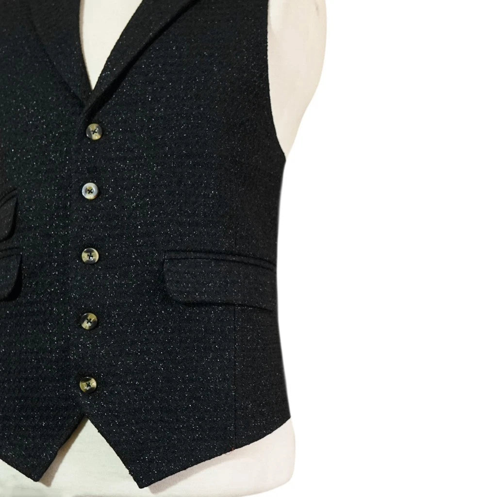 Mens 46R Black Textured Jacquard Vest Classic Waistcoat Formal Wedding Party