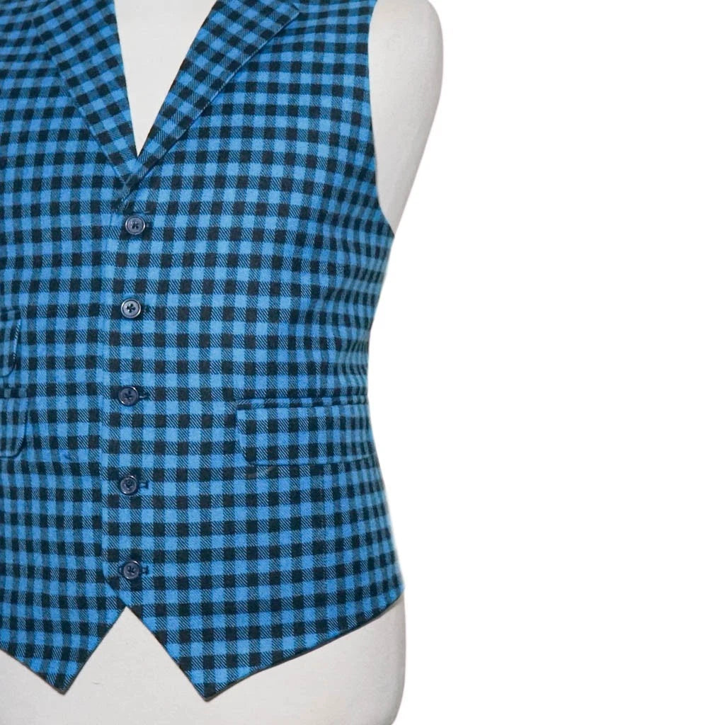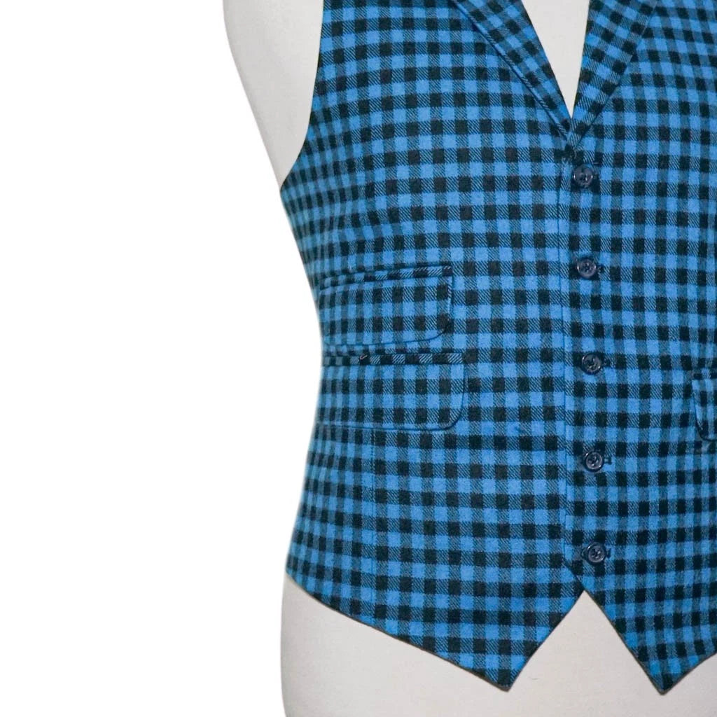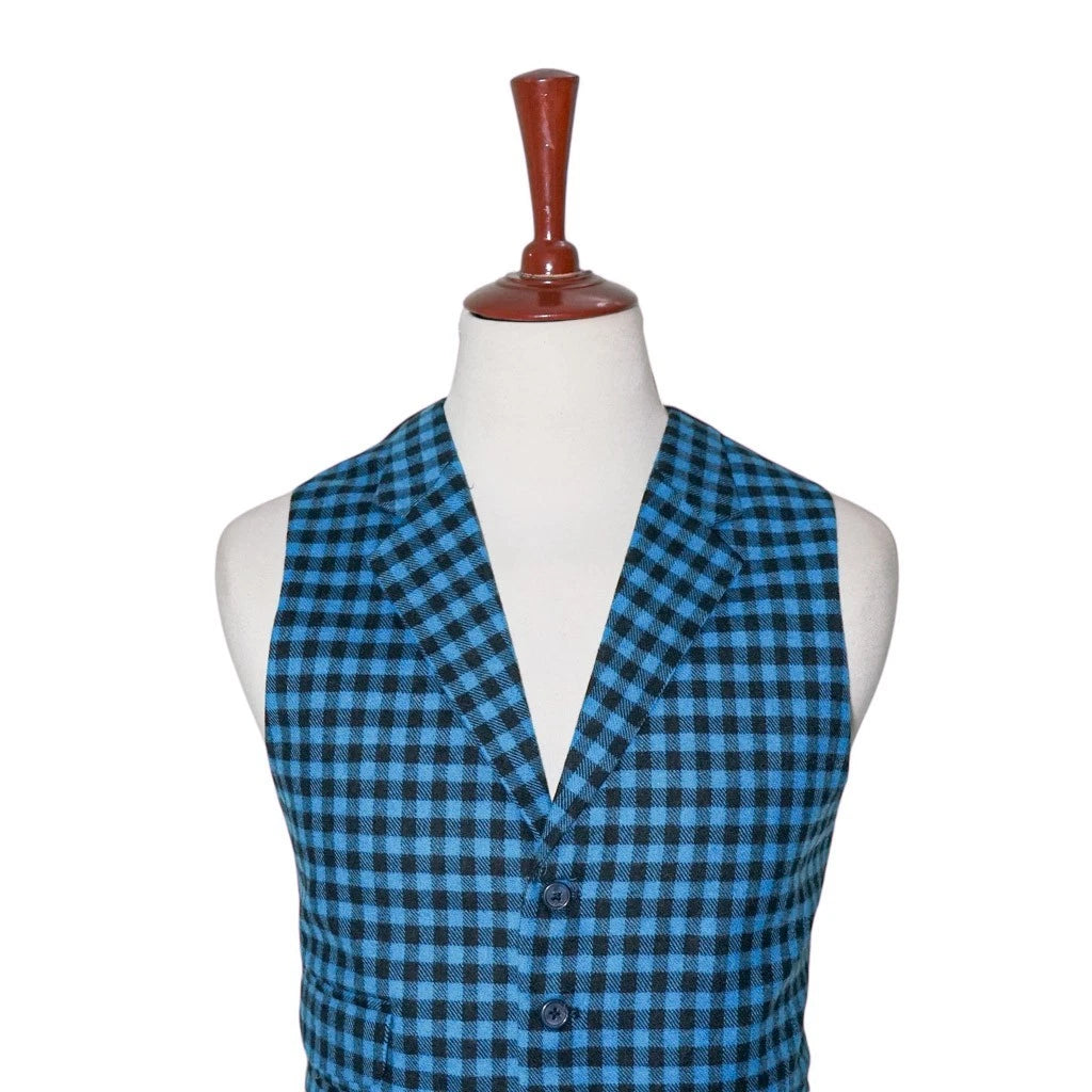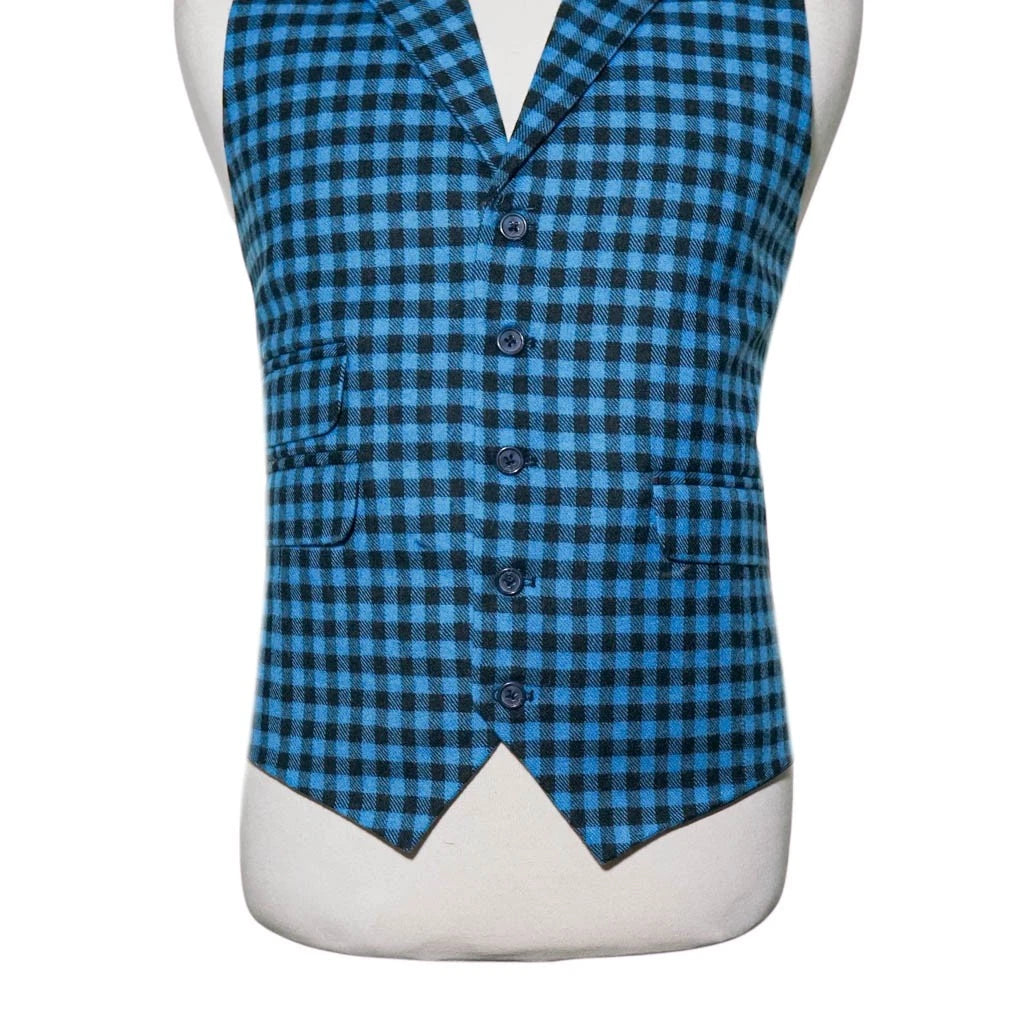 Make a Bold Statement with Our Blue & Black Check Plaid Waistcoat – A Handmade Masterpiece of Vintage Style and Modern Elegance
