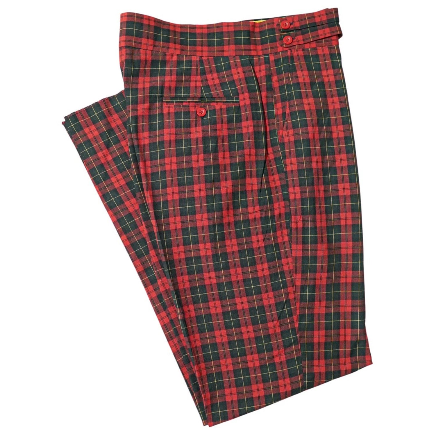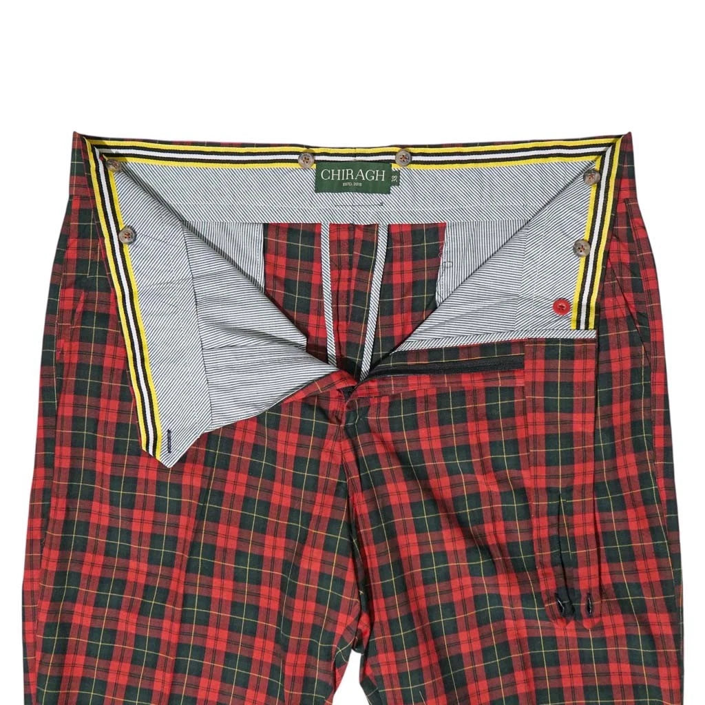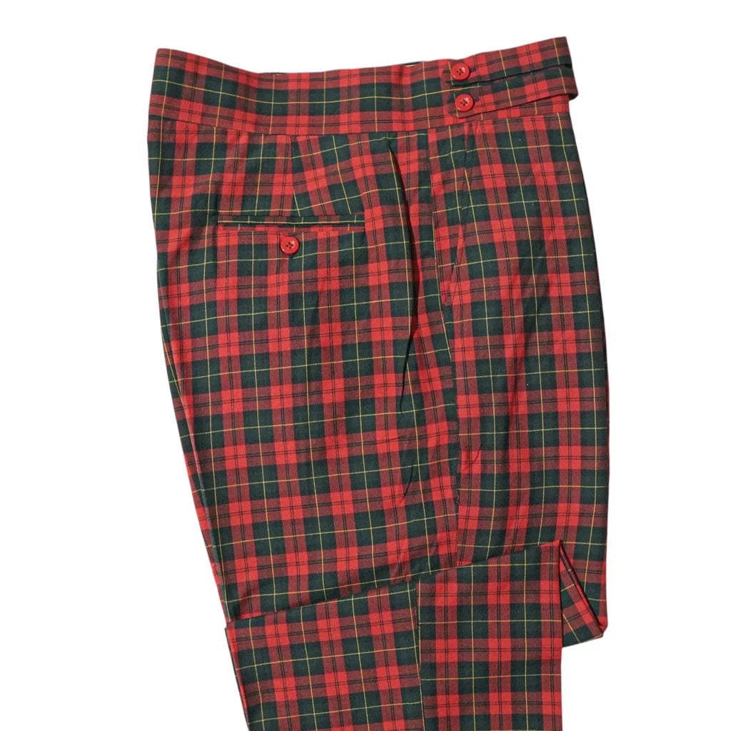 Red, Green, & Yellow Tartan Plaid Gurkha Pants – Handmade Designer Trousers for Men | 100% Wool by Chiragh