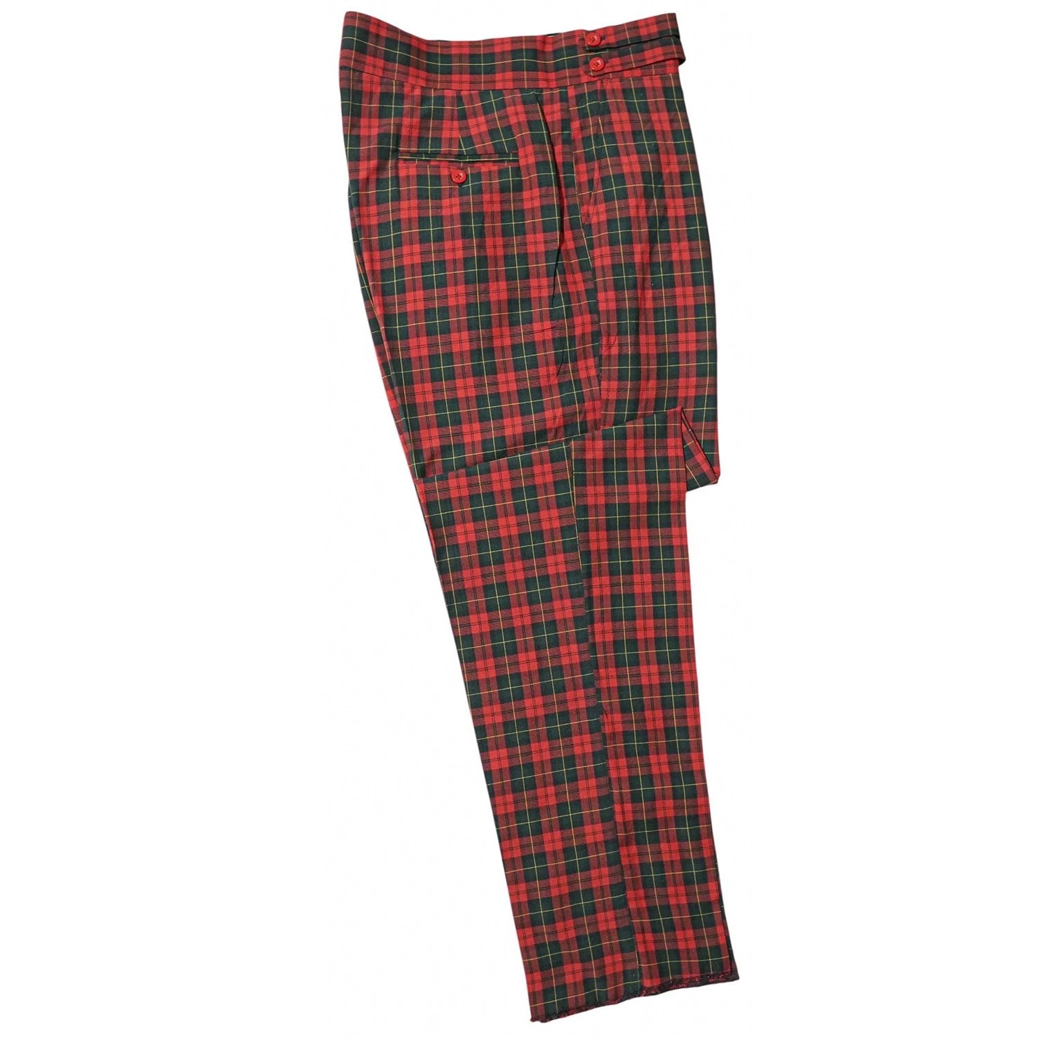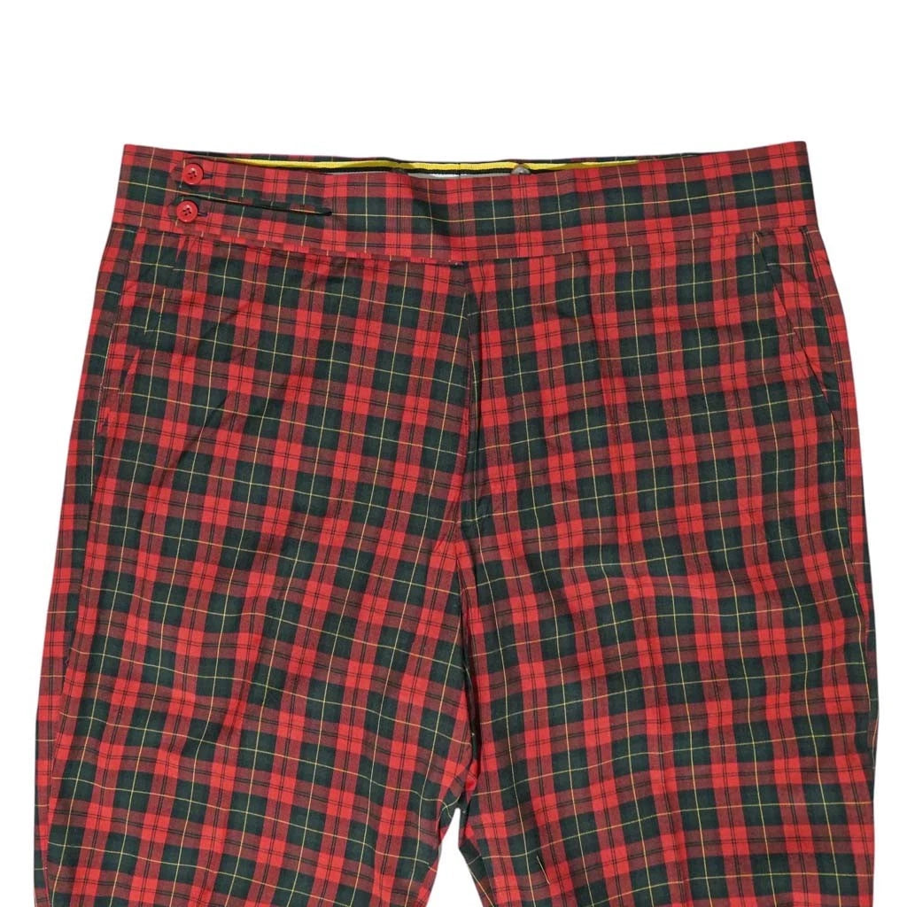 Mens Gurkha Pants 38 Red Green Yellow Tartan Plaid Straight Fit Dress Trousers